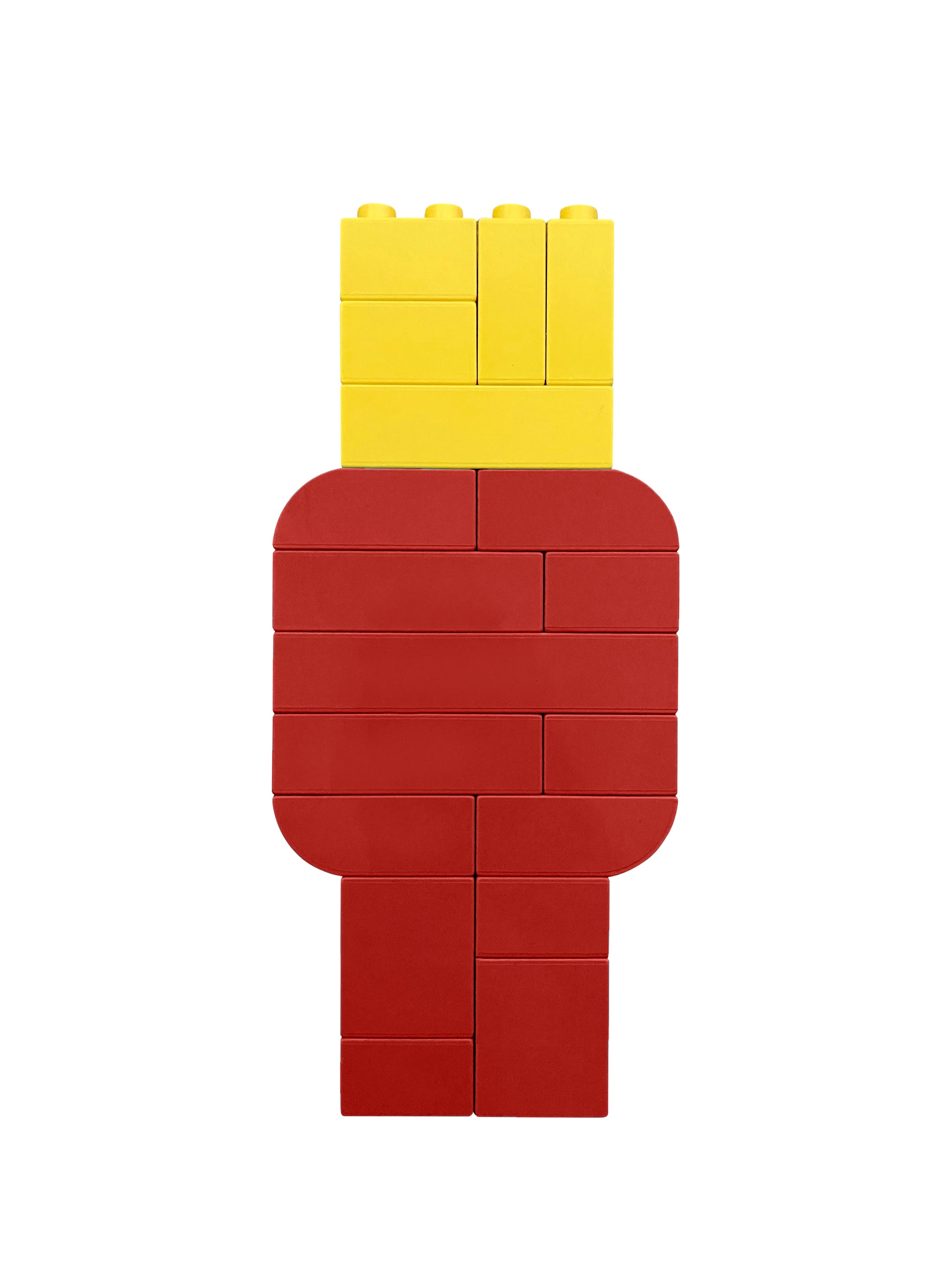 The "Fill Color" is the color of the bricks used to fill the negative space within the letters. Choose between Dark Blue, White, or Yellow.